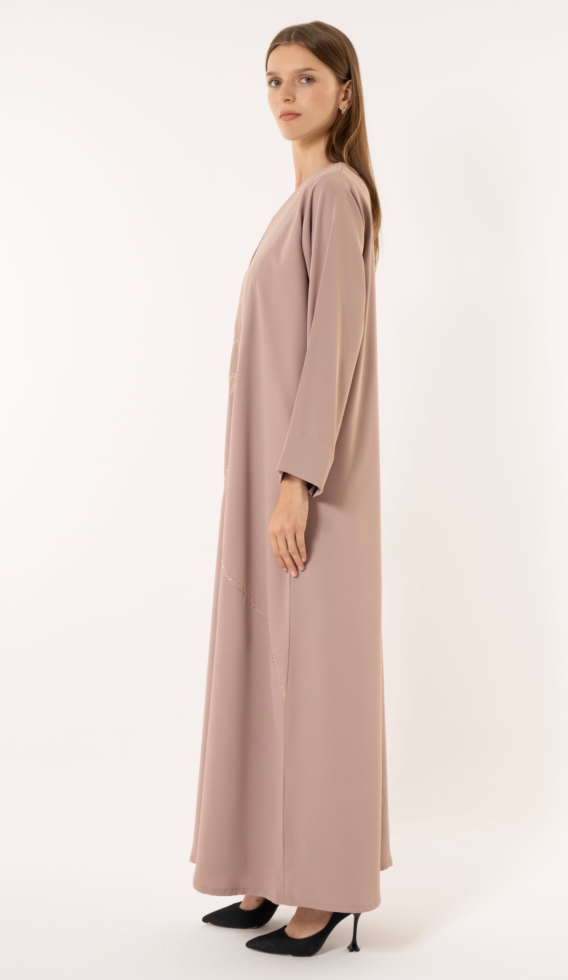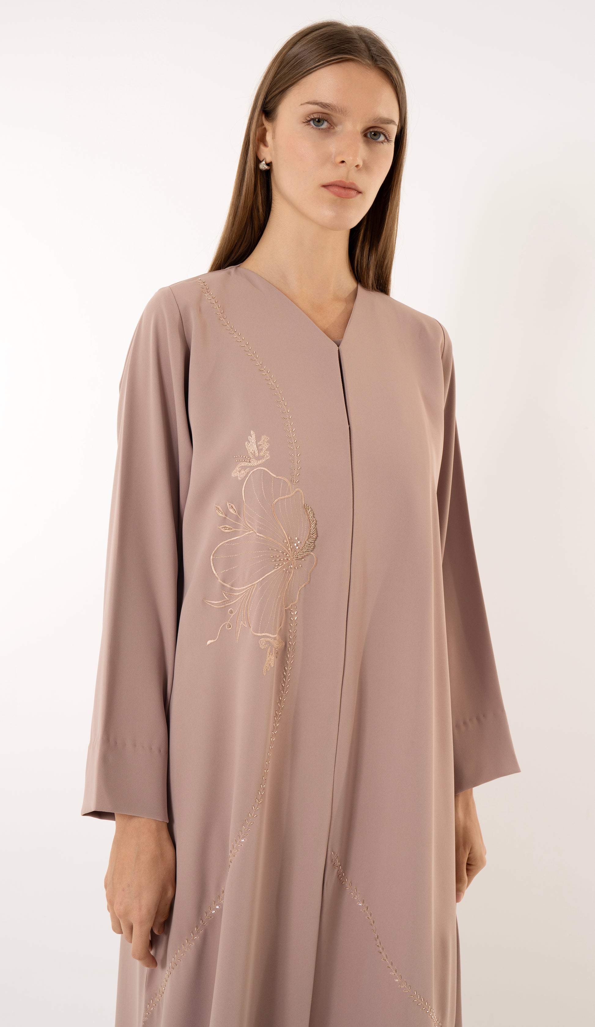 Floral Embroidery With Thread And Beads Embellishments In Beige Abaya