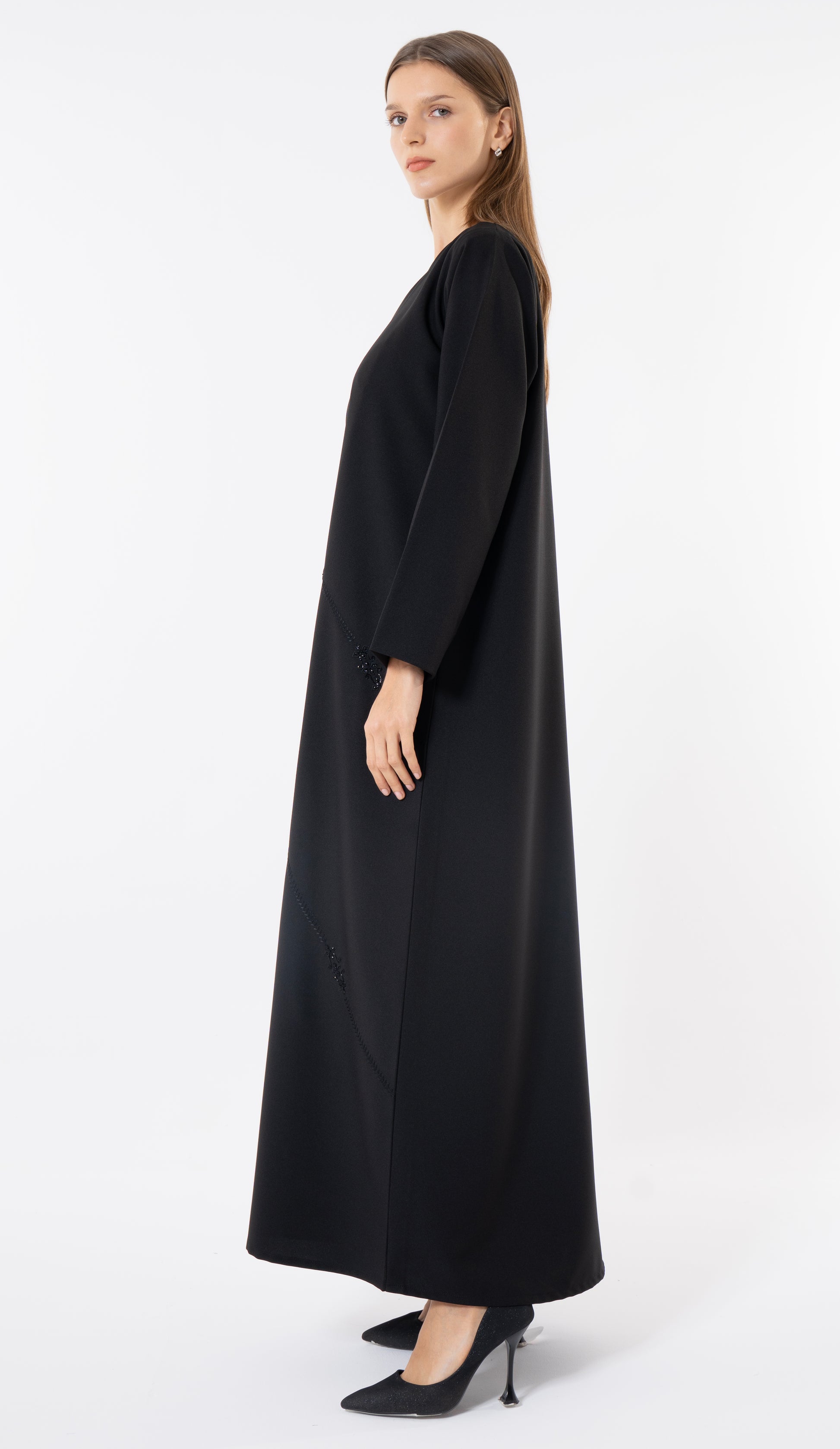 - MODEL NO: Black Abaya With Embroidery And Beads Handwork Detailing