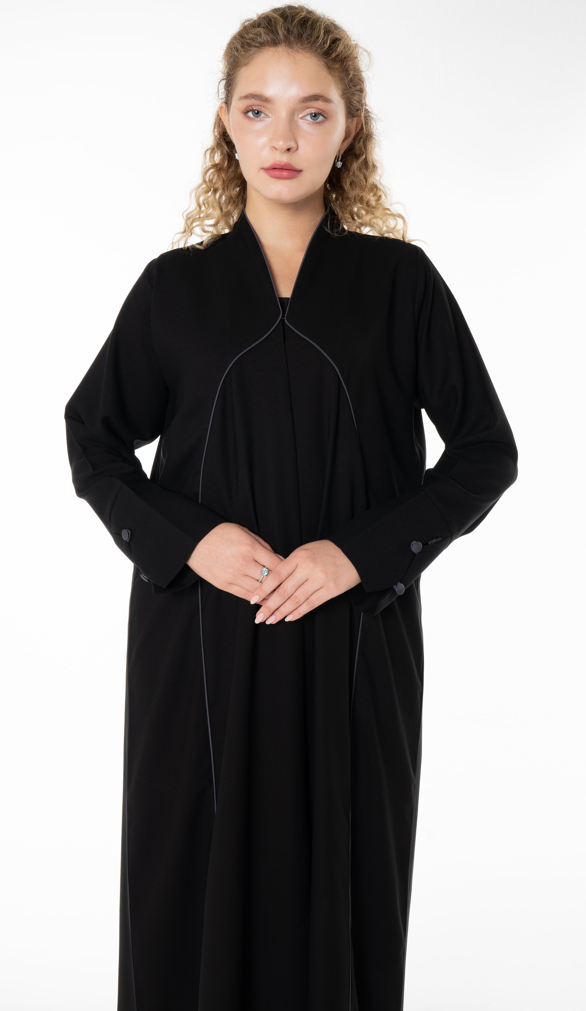 Black Abaya With Grey Color Pipping Details